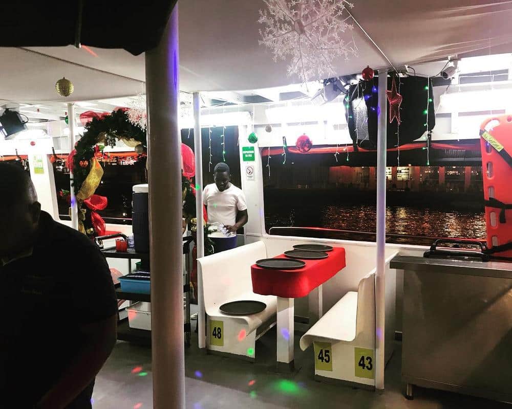 La embarcación Bequia ofrece todas las comodidades: zonas de mesas compartidas y privadas, amplios espacios para bailar y un servicio de atención impecable. Además, quienes reserven mesa privada para 5 personas recibirán una botella de whisky de 750 ml totalmente gratis, ideal para compartir entre amigos o familia.