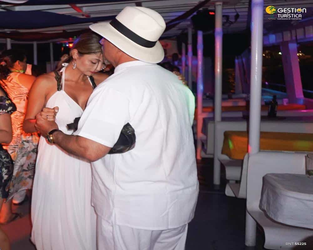 El recorrido nocturno por la bahía de Cartagena convierte esta celebración en algo completamente inolvidable. Desde la cubierta, los invitados podrán admirar los fuegos artificiales, el skyline de la ciudad amurallada, los cruceros iluminados, y los reflejos dorados del mar, mientras disfrutan de buena música y un ambiente vibrante.