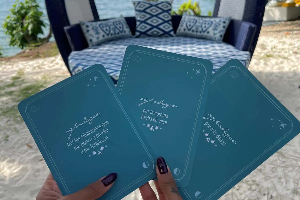 Como parte de nuestra propuesta consciente, invitamos a cada visitante a participar en un ritual de agradecimiento, donde se escoge una carta con tres razones para agradecer.